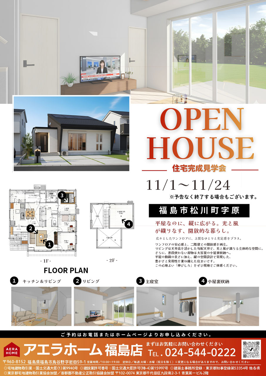| お問合せ先 | アエラホーム福島店 TEL. 024-544-0222 FAX. 024-244-7122 |